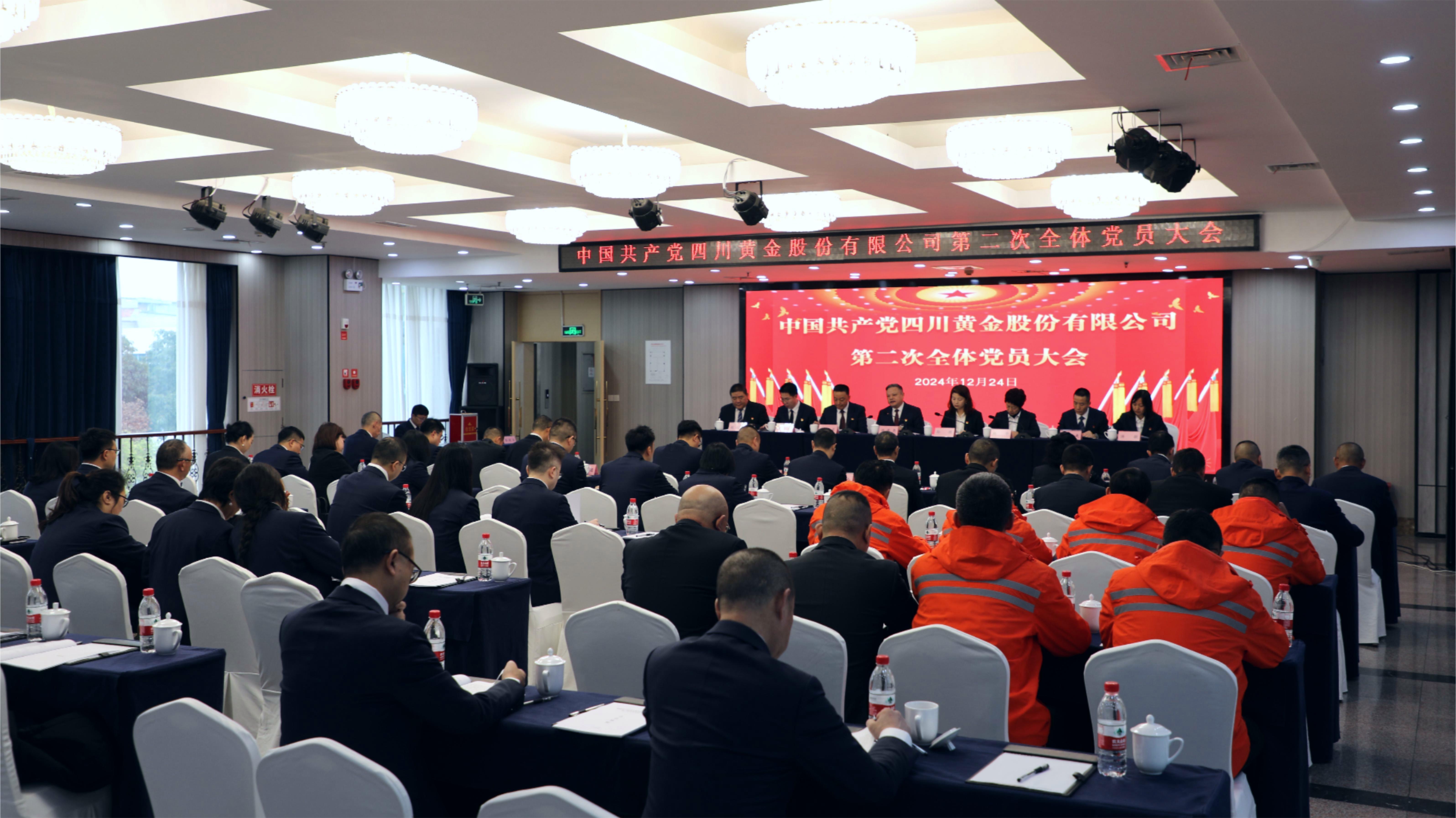 2024年12月24日,中國(guó)共產(chǎn)黨四川黃金股份有限公司第二次全體黨員大會(huì)在成都召開。會(huì)議由公司黨委副書記、副董事長(zhǎng)、總經(jīng)理吳安東主持,區(qū)調(diào)隊(duì)黨委副書記孫瑕,紀(jì)委書記、工會(huì)主席楊華到會(huì)指導(dǎo)。