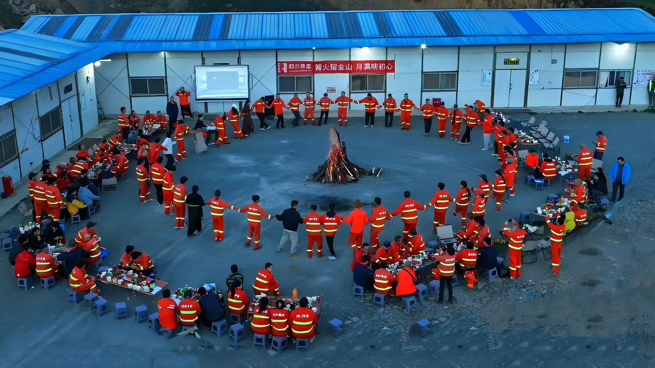 天幕為頂,繁星為燈,礦山一線員工相聚在這片雪域高原,共同點燃象征溫暖與團結的篝火。