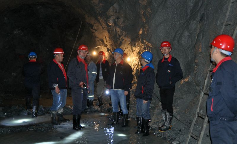 吳安東在井巷建設施工作業(yè)區(qū)、采礦面、選礦廠、尾礦庫、鉆探施工作業(yè)區(qū)進行實地檢查,詳實了解有關工程質量和安全生產工作情況?,F(xiàn)場檢查完畢后,吳安東立即主持召開礦山工作會議暨梭羅溝金礦“不忘初心、牢記使命”主題教育調研座談會。